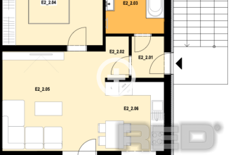 Dvojizbový apartmán E2 na 2. nadzemnom podlaží, disponuje výmerou 52,49 m2, s balkónom o výmere 3,76 m2 a pivnicou na prízemí domu s výmerou 2,31 m2. Dispozične pozostáva zo vstupnej chodby, dennej časti, kuchyne, jedálne a obývačky s východom na balkón, priestrannej kúpeľne s oknom a veľkej spálne . Veľmi príjemný byt sa odovzdáva v stave holobyt / kúpeľne, sanita, podlahy a dvere /. Projekt ponúka súkromný oplotený areál so záhradou a parkovaním, kde je možnosť výberu z otvorených alebo prestrešených parkovacích miest s doplatkom / 11 000 - 15 000,- € / Projekt je situovaný v pokojnej a tichej lokalite na predmestí mesta Žilina. V okolí sa nachádza aj kompletná občianska vybavenosť (škola, škôlka, potraviny, pošta, zastávka MHD...). Predpokladaný termín dokončenia projektu: 12/2025.