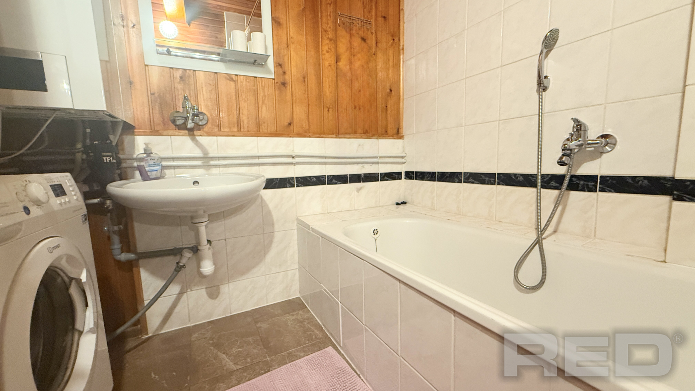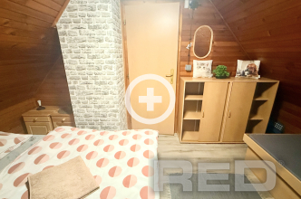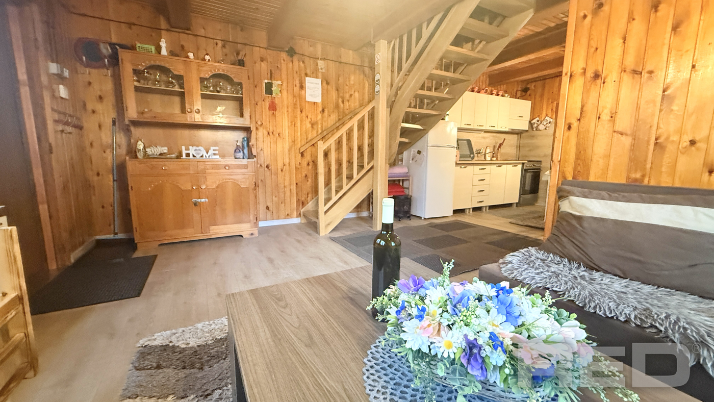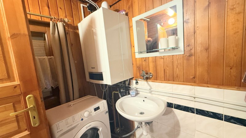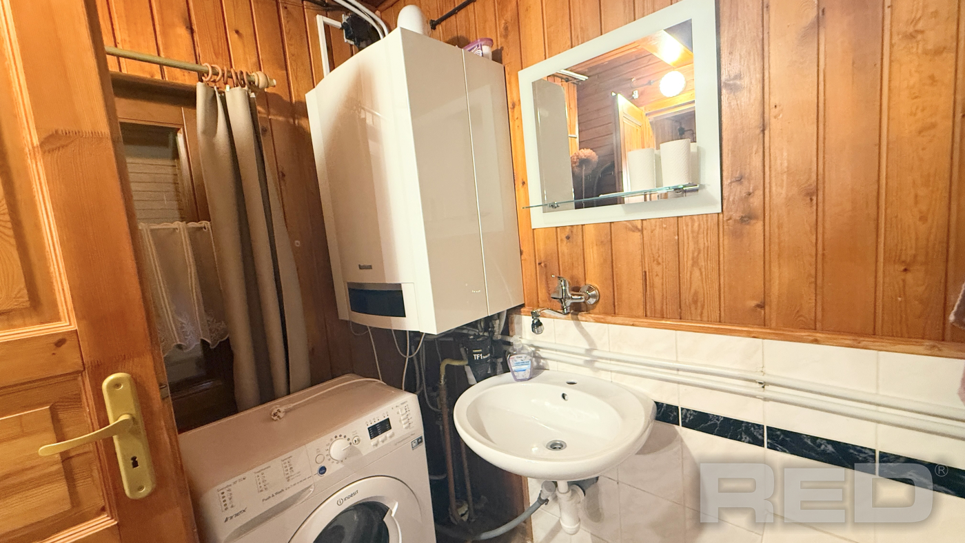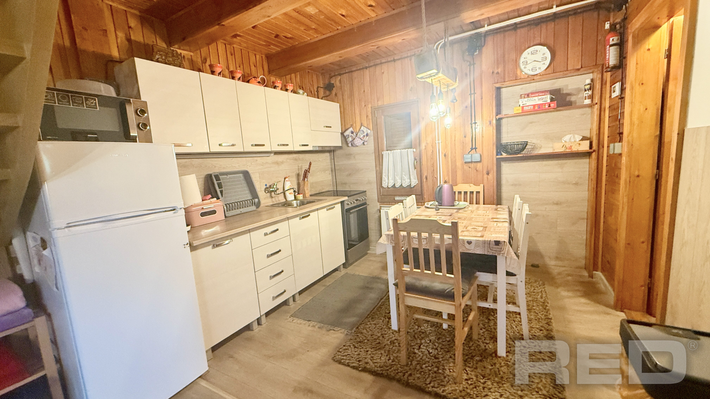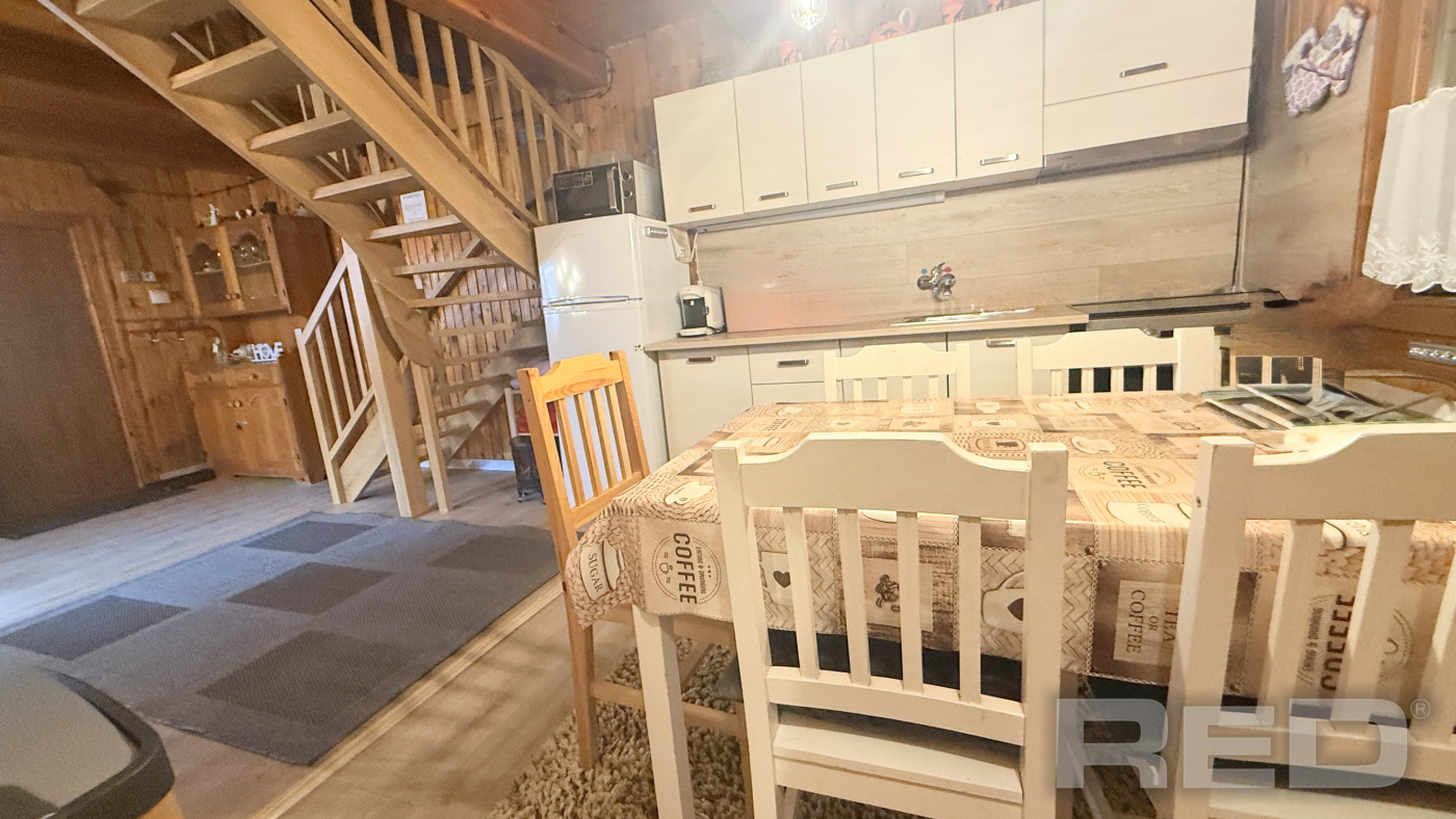 • Prízemie: priestranná obývacia izba s TV prepojená s plne vybavenou kuchyňou a jedálenským kútom, samostatná kúpeľňa (plynový kotol), oddelená toaleta