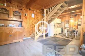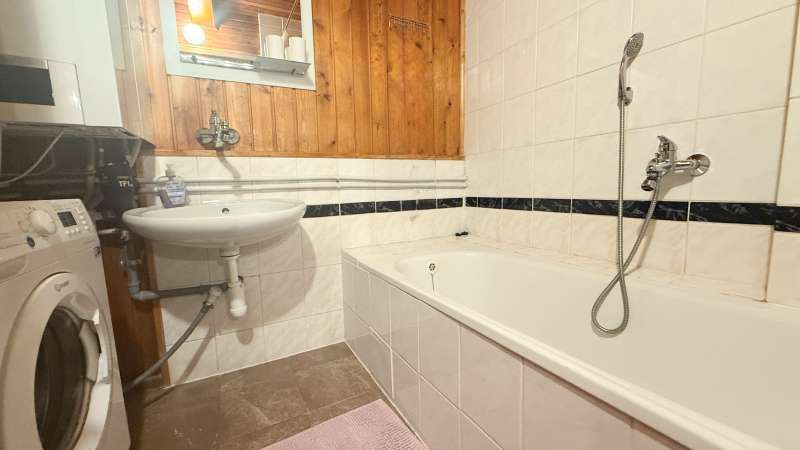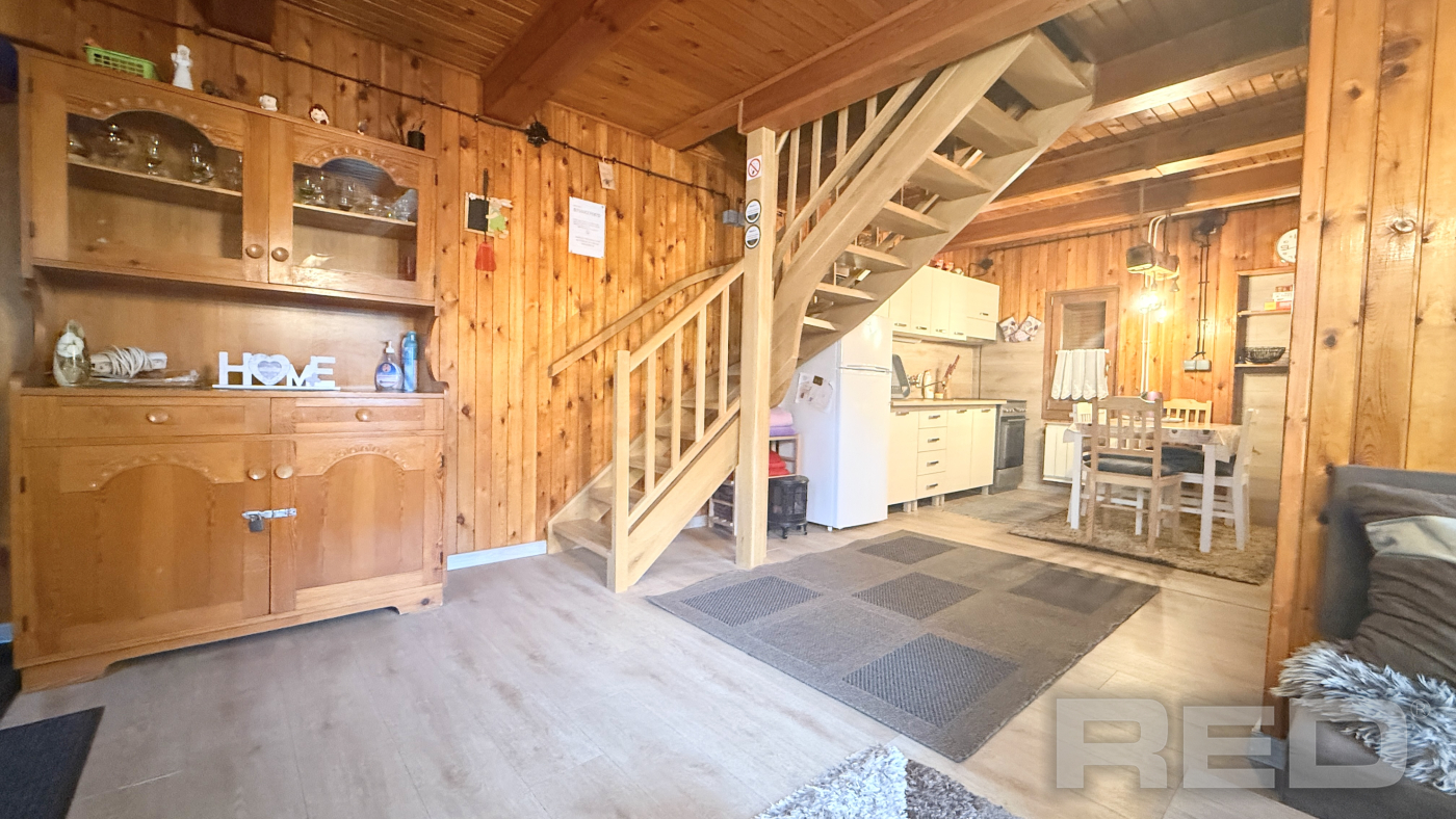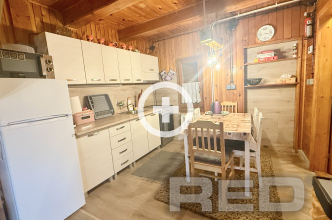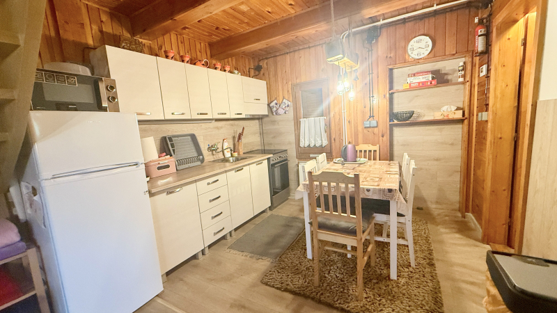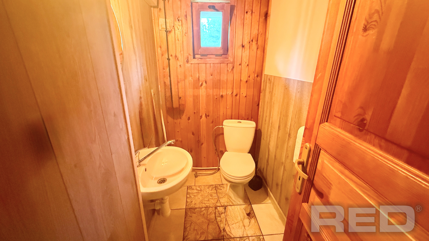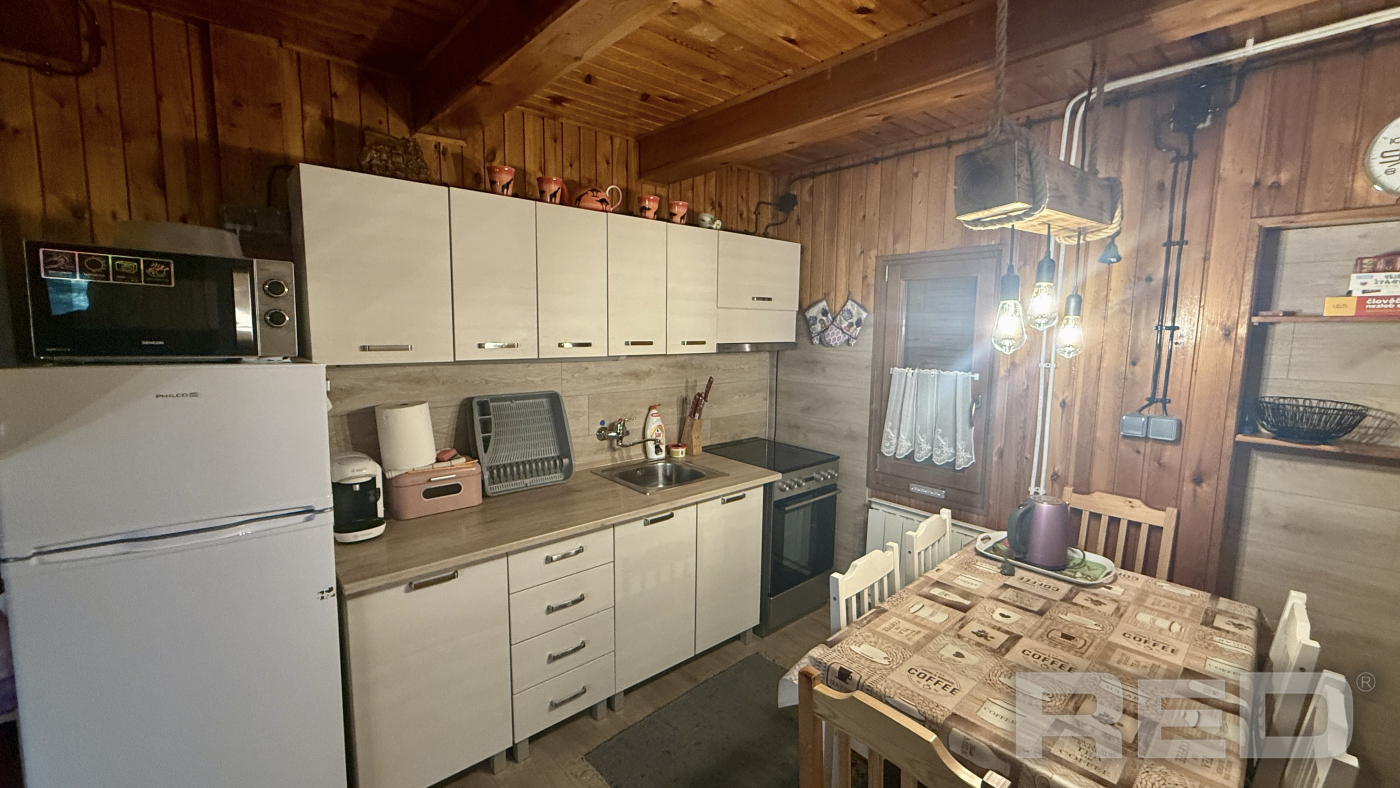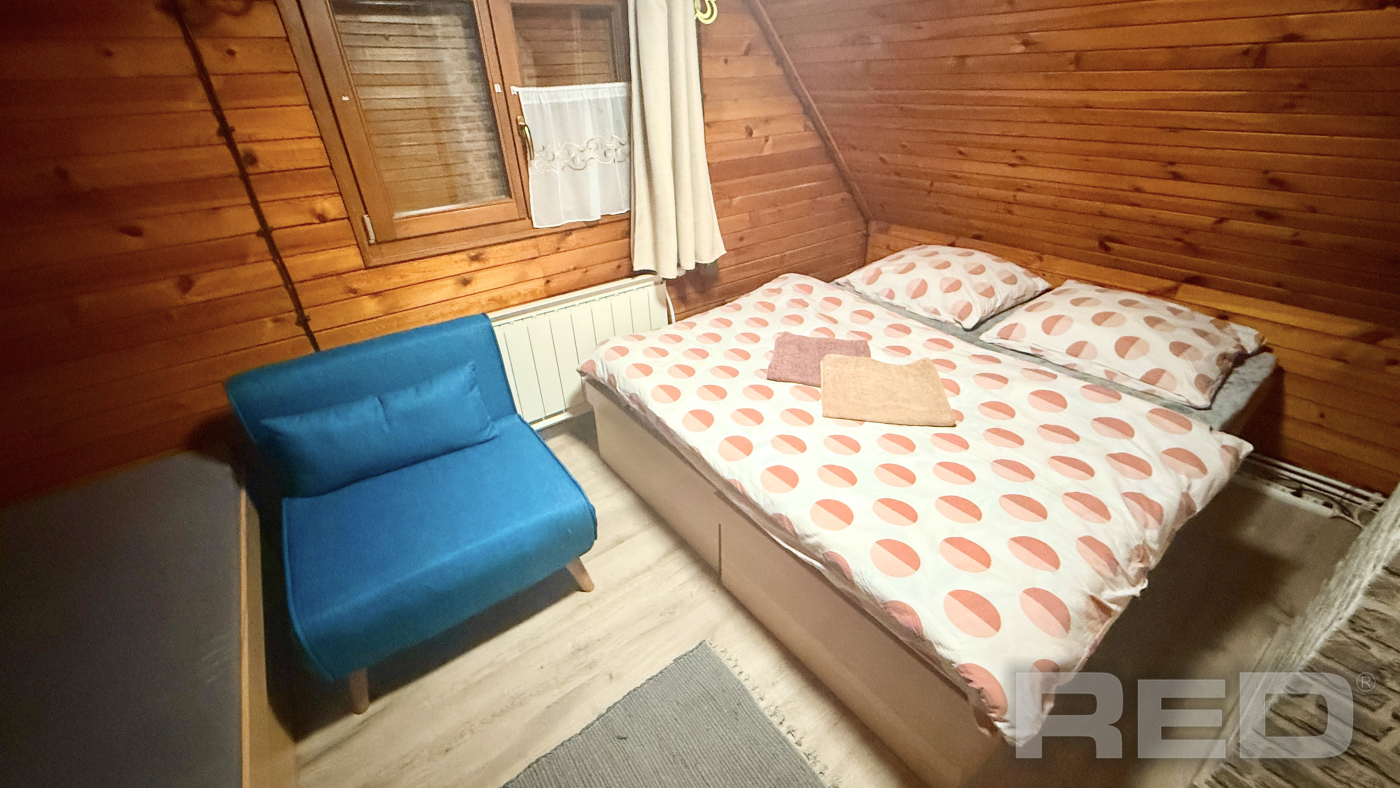 • Prízemie: priestranná obývacia izba s TV prepojená s plne vybavenou kuchyňou a jedálenským kútom, samostatná kúpeľňa (plynový kotol), oddelená toaleta