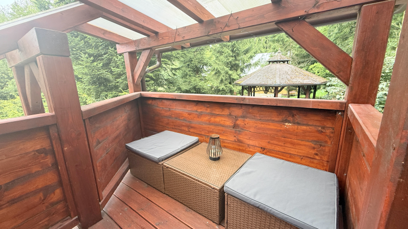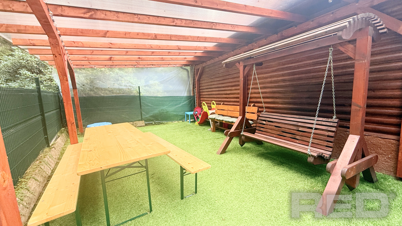 • 3 zastrešené terasy s krbom, posedením, hojdačkou a grilom