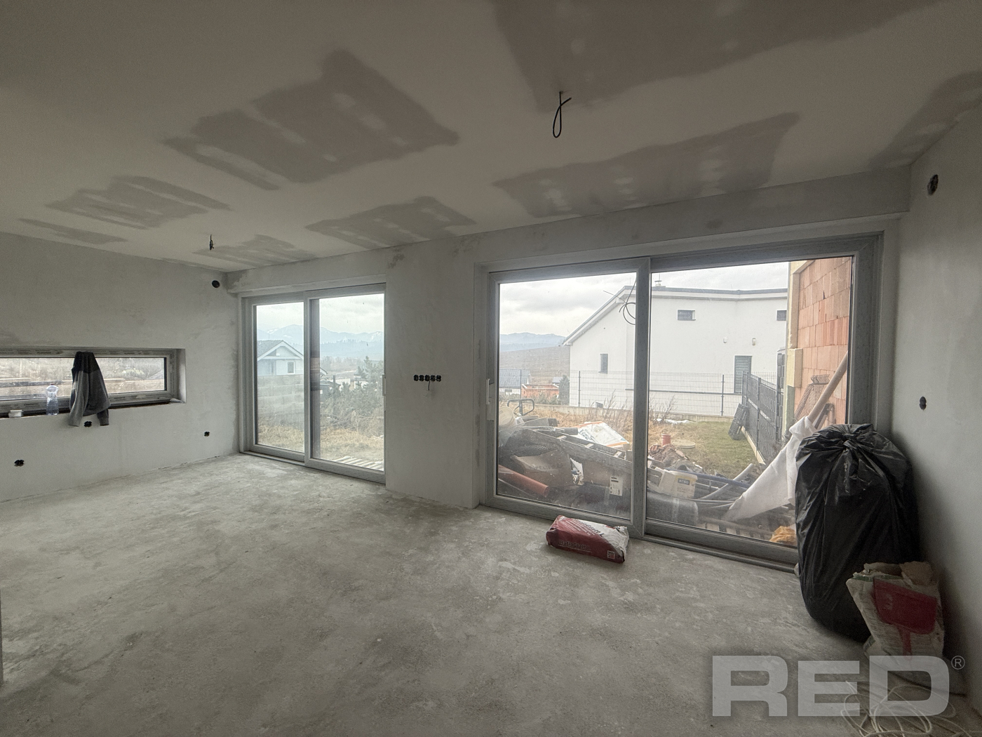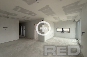 1. nadzemné podlažie disponuje vstupnou chodbou, detskou izbou, kúpeľňou spolu s WC, hlavná spálňa, šatník, obývacia miestnosť prepojená s kuchyňou so vstupom na balkón.