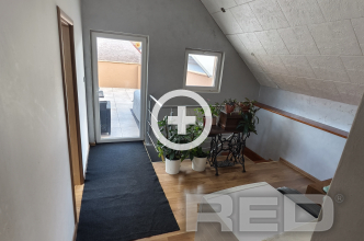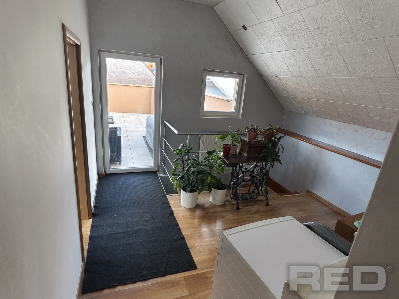 Dominantou poschodia je otvorená galéria prístupná schodiskom, ktorá môže slúžiť ako pracovňa, čitáreň či relaxačný priestor. Z tejto časti je priamy vstup na veľkú 50 m² terasu, ktorá rozširuje obytný priestor a ponúka ideálne miesto na oddych či posedenia s rodinou a priateľmi.