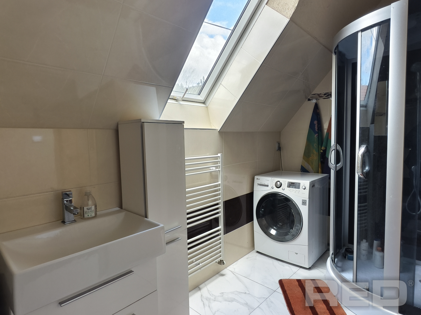 Súčasťou domu je samostatný apartmán s dvoma spáľňami, obývacou izbou s kuchynským kútom a kúpeľňou. Ponúka možnosť stabilného mesačného príjmu z prenájmu, ktorý môže výrazne znížiť, prípadne pokryť splátky hypotéky. Vďaka samostatnému vstupu a dvoru je ideálny na dlhodobý prenájom, krátkodobé ubytovanie (napr. cez Booking, Airbnb) alebo komfortné bývanie pre hostí či rodinu. Apartmán aktuálne generuje zisk a má výborné hodnotenia v rámci ubytovacích portálov.