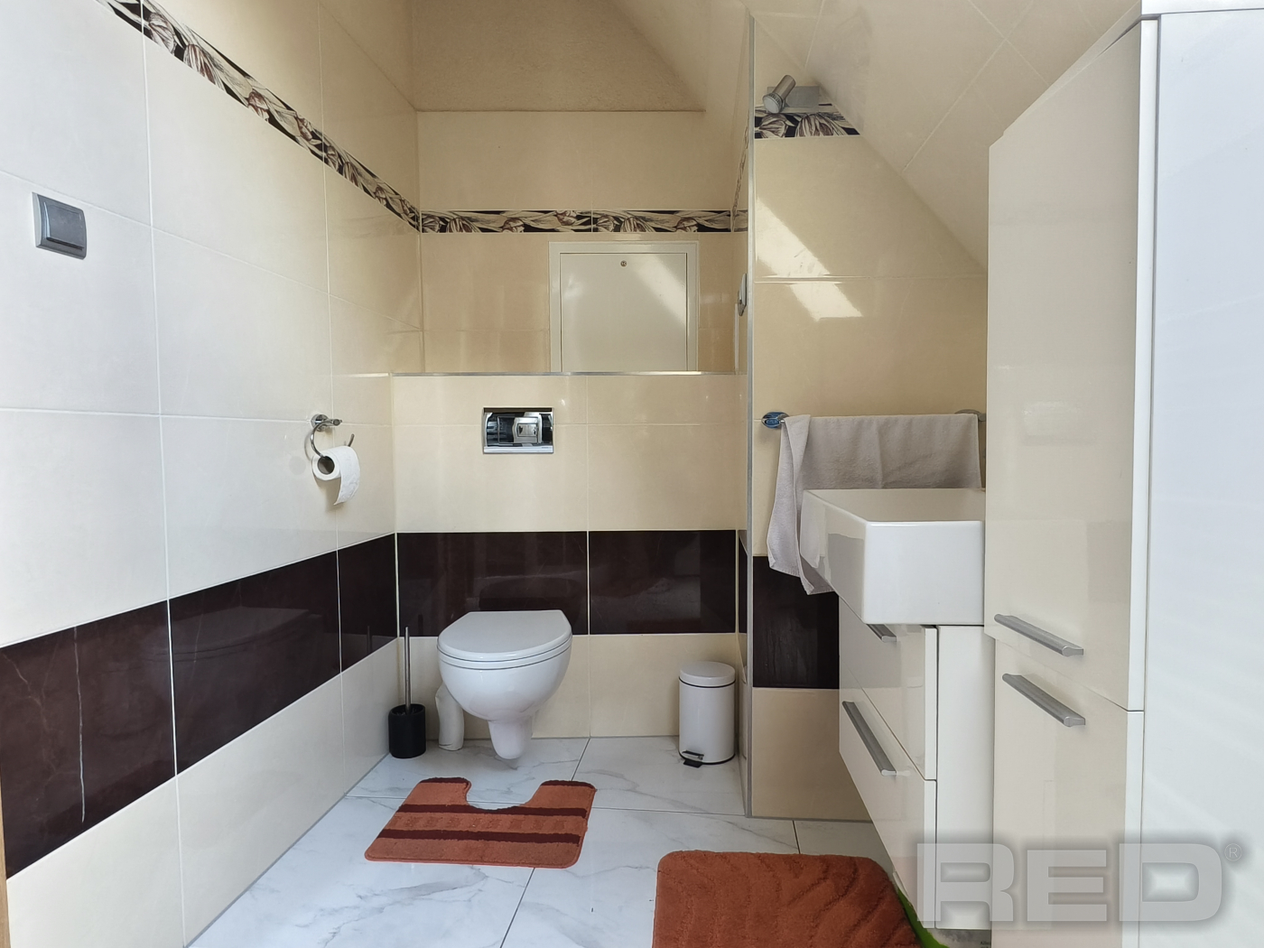 Na poschodí je situovaná nočná časť so štyrmi samostatnými izbami. Ďalšia kúpeľňa na poschodí disponuje WC a sprchovým kútom.