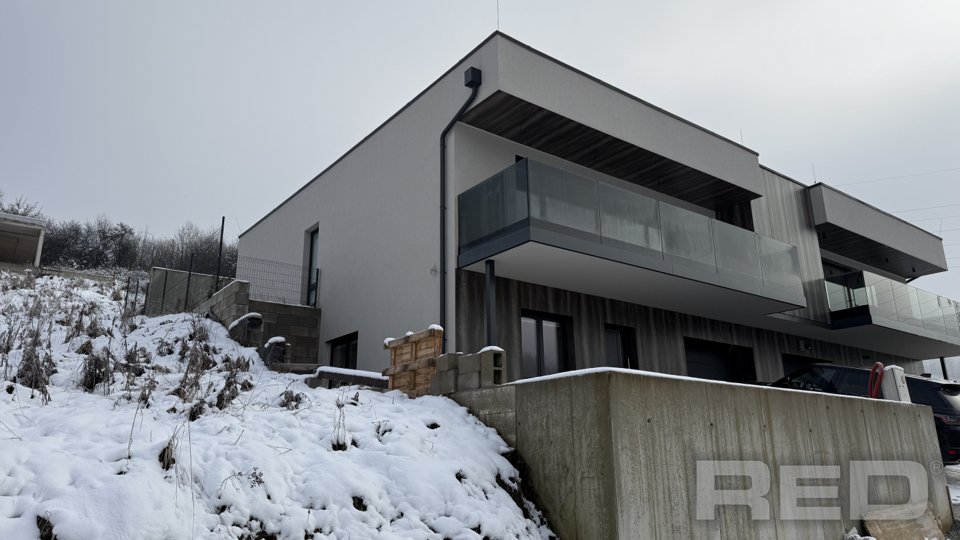 Dom je postavený na slnečnom pozemku s orientáciou na juhozápadnú stranu, súčasťou domu je aj vyhrievaná garáž o celkovej výmere 23m2 + dve vonkajšie parkovacie miesta + balkón s výmerou 21m2 a terasou o výmere 54m2 s orientáciou na východ.