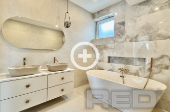 Dom je postavený v kvalitnom nadštandarde – hliníkové vstupné dvere, plastové okná s trojsklom, energeticky úsporné riešenia a moderné povrchové úpravy zaručujú komfortné a bezstarostné bývanie s nízkymi mesačnými nákladmi.
