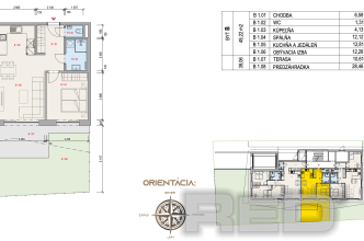 Byt s úžitkovou plochou 52,41m2 sa bude nachádzať na prízemí 3-podlažného obytného domu a patrí k nemu terasa 10,61m2 a predzáhradka s výmerou 28,46m2.