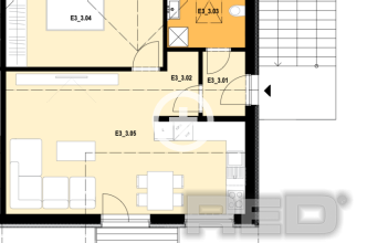 Dvojizbový apartmán na 2. nadzemnom podlaží, disponuje  výmerou 56,02 m2, s balkónom o výmere 3,25 m2 a pivnicou na prízemí domu s  výmerou 5,81 m2. Dispozične pozostáva zo vstupnej chodby, dennej časti, kuchyne, jedálne a obývačky s východom na balkón, priestrannej kúpeľne s oknom a veľkej spálne .  Veľmi príjemný byt sa odovzdáva v stave holobyt / kúpeľne, sanita, podlahy a dvere /.  Projekt ponúka súkromný oplotený areál so záhradou a parkovaním, kde je možnosť výberu z otvorených alebo prestrešených parkovacích miest  s doplatkom / 11 000 - 15 000,- € / Projekt je situovaný v pokojnej a tichej lokalite na predmestí mesta Žilina. V okolí sa nachádza aj kompletná občianska vybavenosť (škola, škôlka, potraviny, pošta, zastávka MHD...). Predpokladaný termín dokončenia projektu: 12/2025.