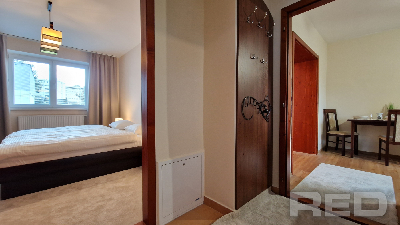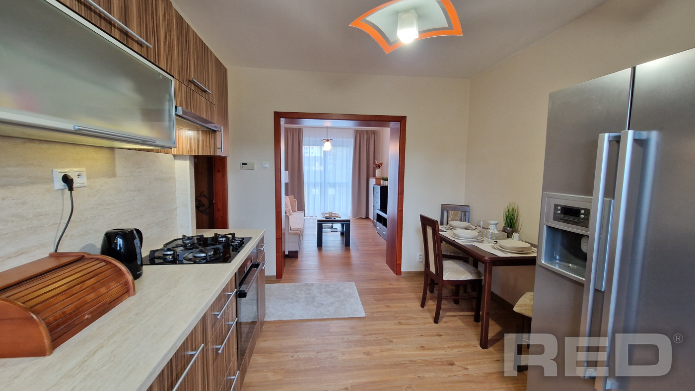 Teplý, celodenne slnečný, tehlový 2 - izbový byt o výmere 58m2 sa nachádza na 2./2p. v centre Žiliny na Hollého ulici, len 3 minúty peši od Nám. A Hlinku. Byt prešiel kompletnou rekonštrukciou (nové stierky, plastové okná, elektroinštalácia, voda, vinylové podlahy, koberec v spálni, bezpečnostné dvere, WC Geberit, atď), predáva sa zariadený nábytkom aj elektrospotrebičmi (TV, umývačka riadu, plynová varná doska, teplovzdušná rúra, mikrovlnná rúra). V byte je vlastný plynový kotol a elektrické podlahové kúrenie v kúpeľni. Bytový dom je s plastovými oknami na chodbe, 150,-€ mesačné náklady vrátane elektriky a plynu. K bytu prislúcha pivnica. Voľný ihneď.