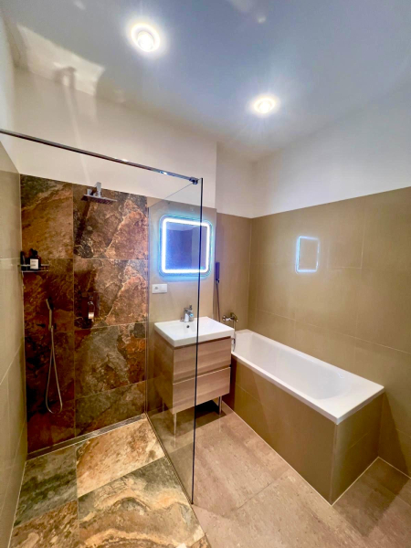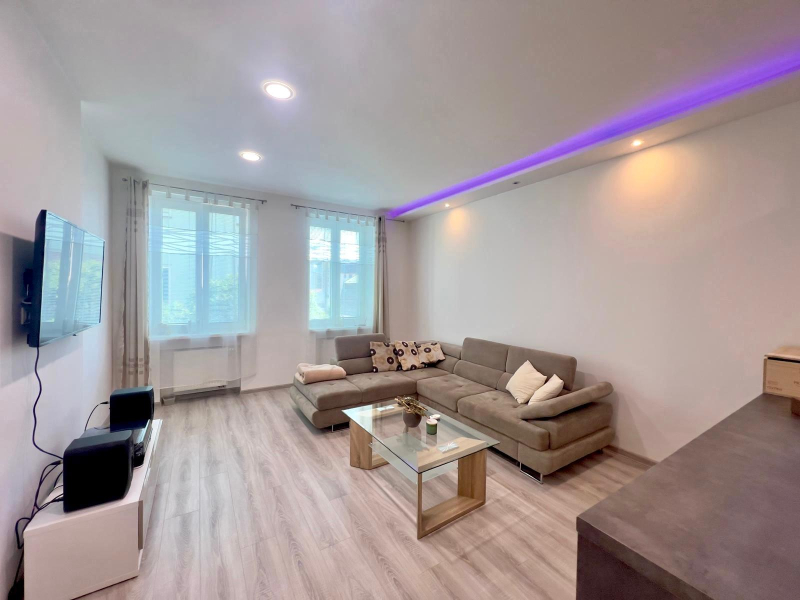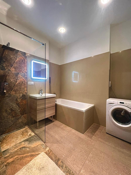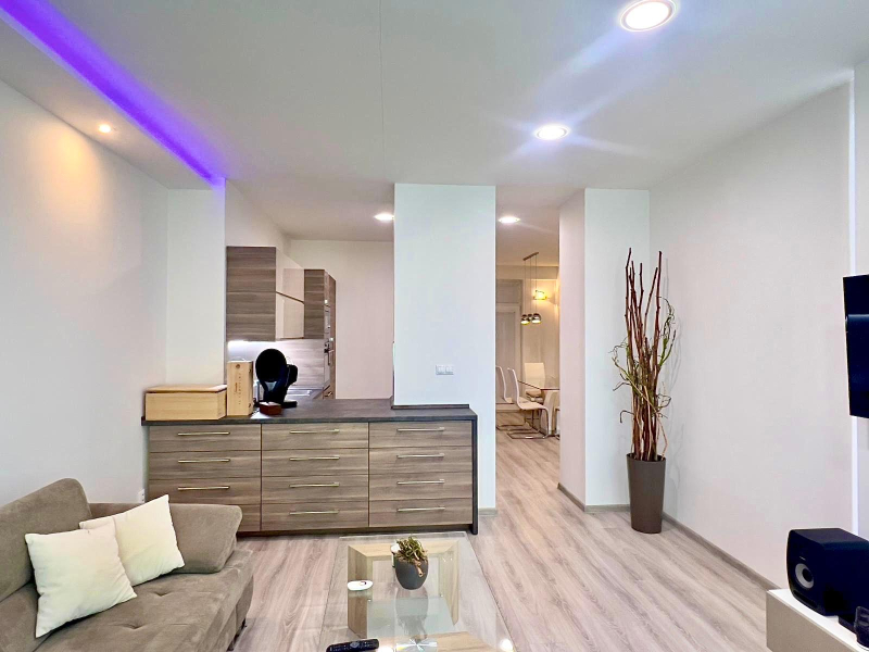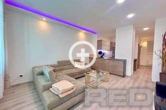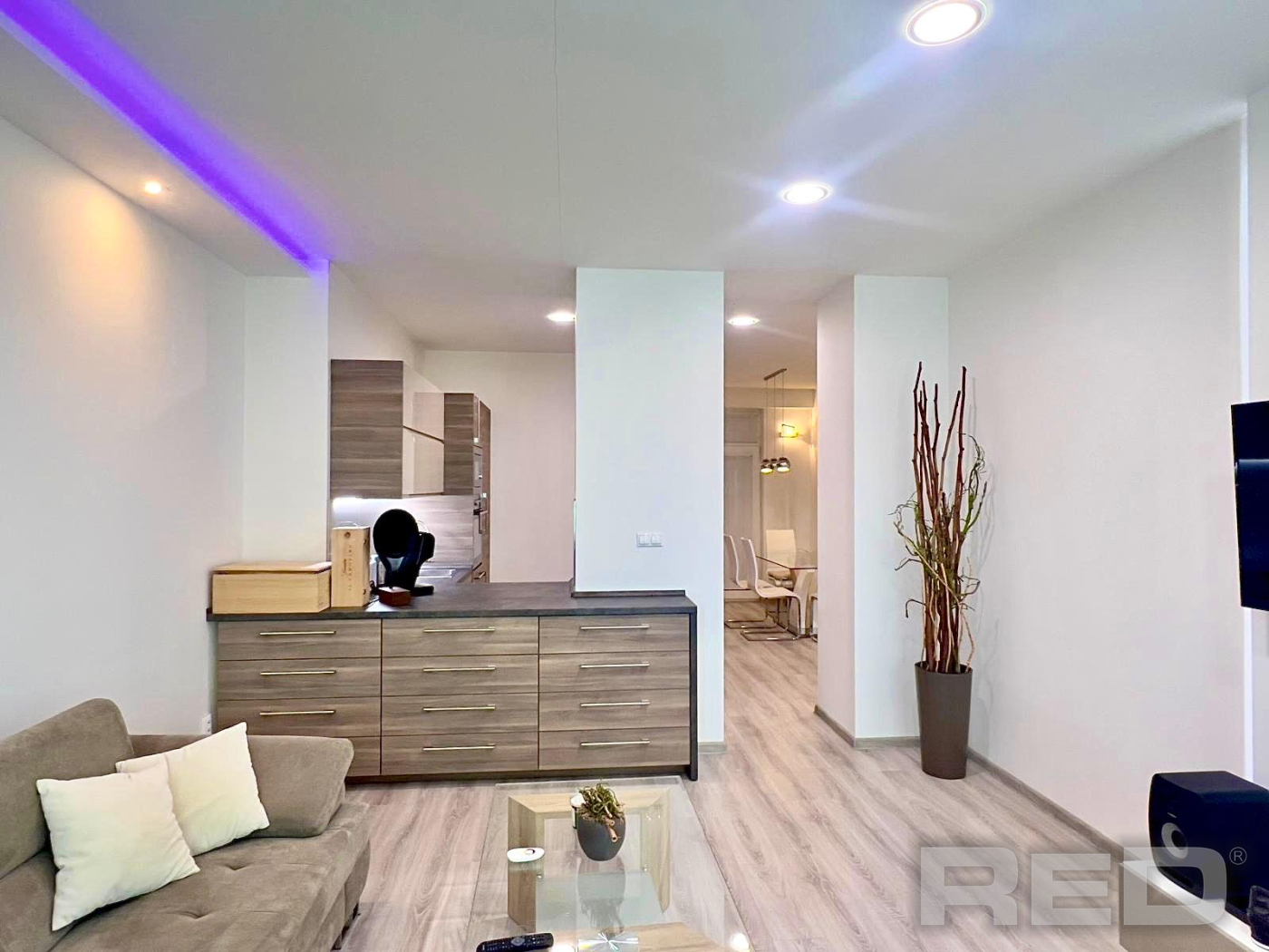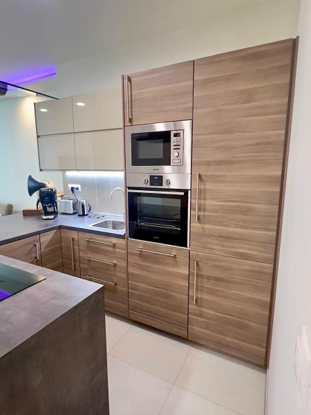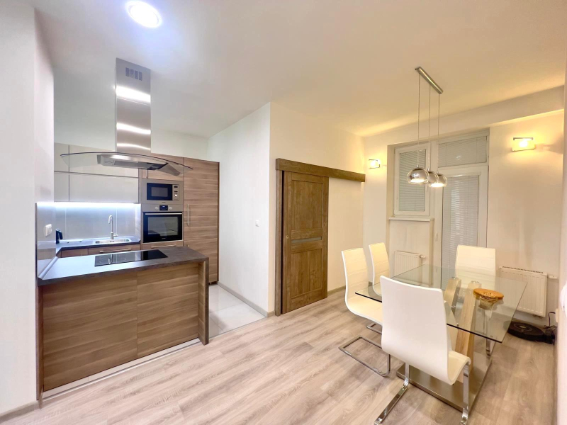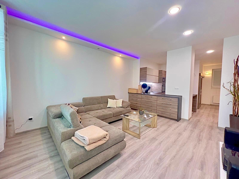 • Kompletne zariadený moderným nábytkom a spotrebičmi (TV, práčka, umývačka riadu, mikrovlnka, rúra, varná doska, chladnička)