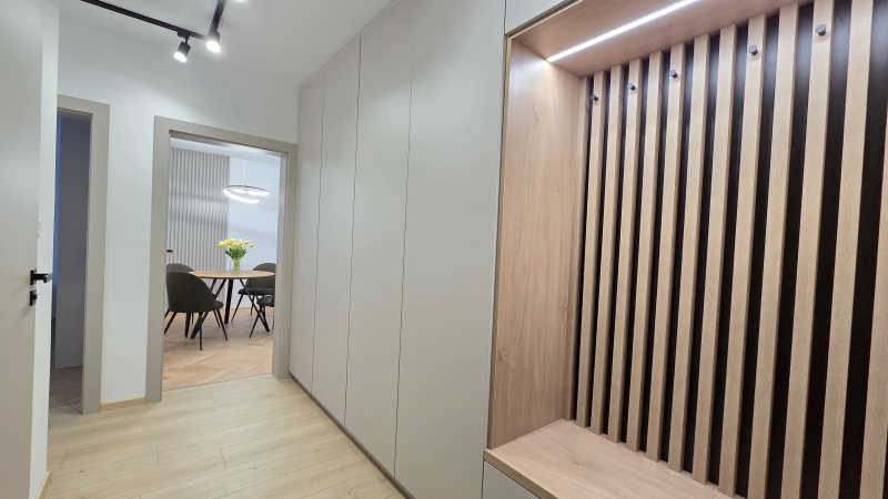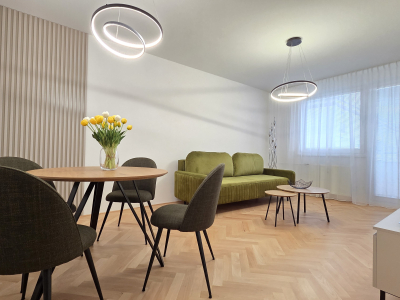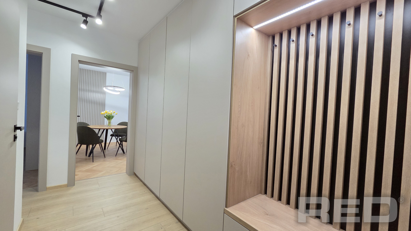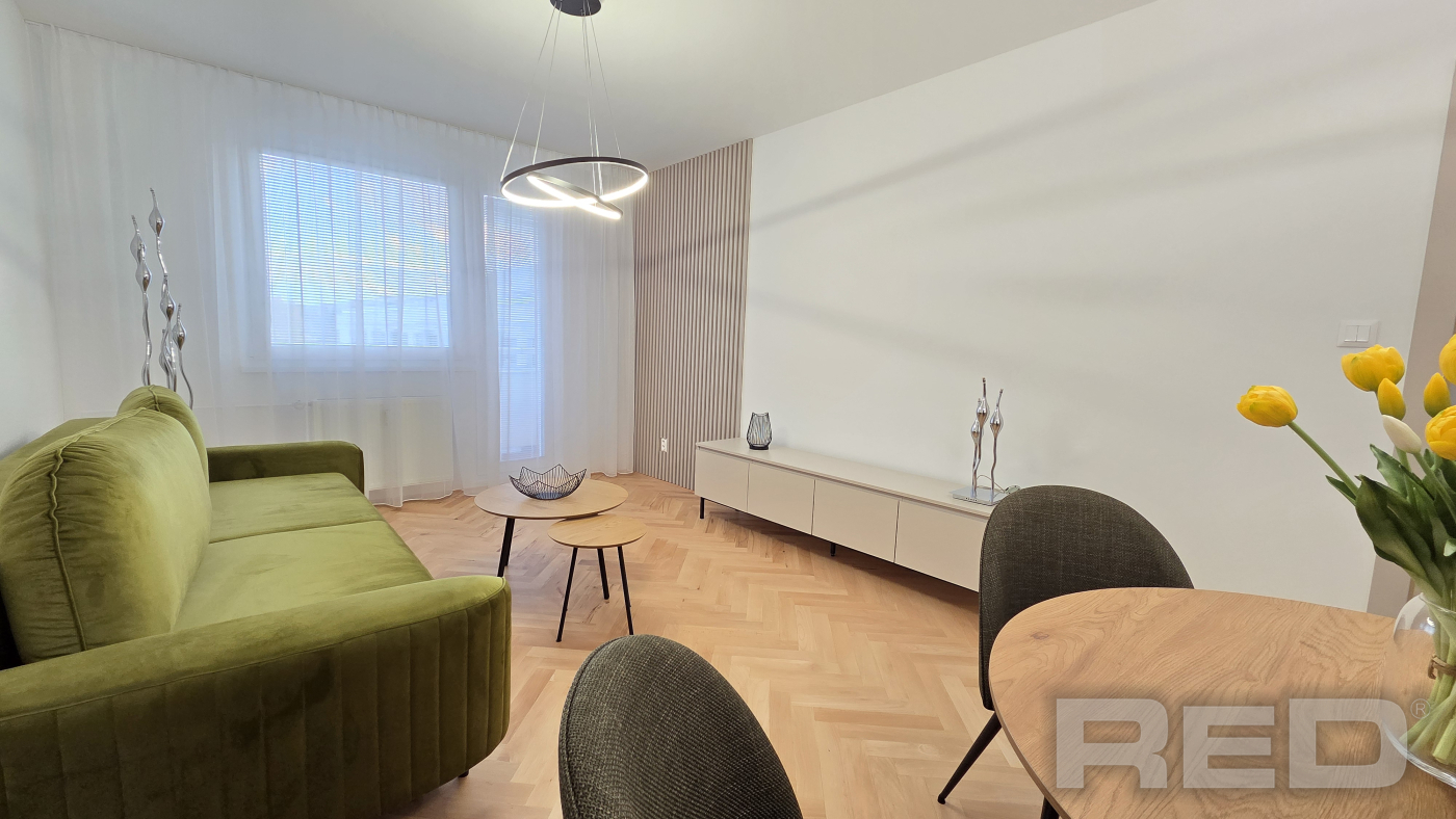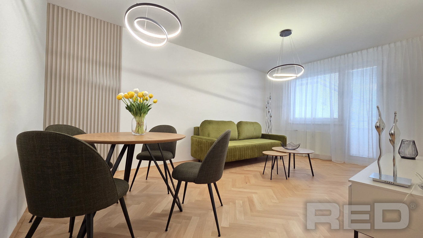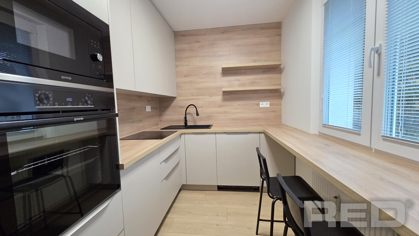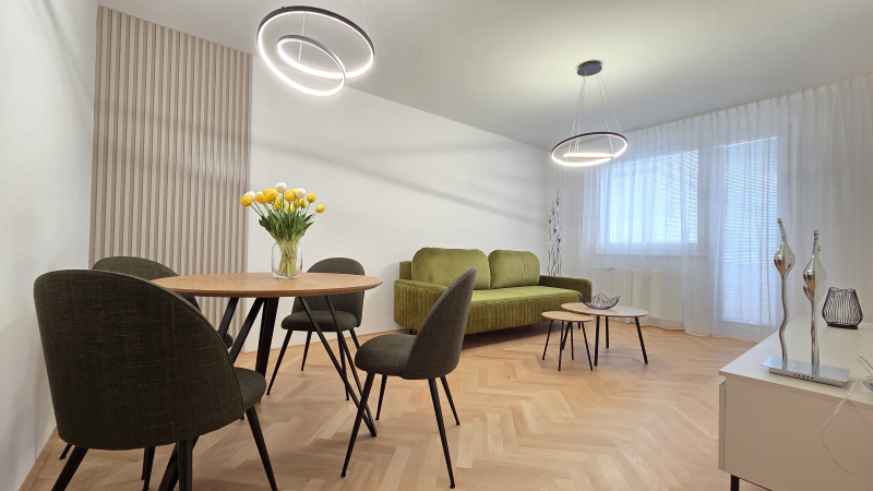Kompletne zrekonštruovaný 2 - izbový byt o výmere 56m2, len 5 minút peši od historického centra Žiliny. Byt sa nachádza na 2./3p. na Hlinách 3 a prešiel kompletnou rekonštrukciou v roku 2025: bezpečnostné dvere, renovované drevené parkety, 2x vstavaná skriňa (v chodbe a spálni), rohová kuchynská linka so spotrebičmi: digestor, indukčná varná doska, teplovzdušná rúra, chladnička s mrazničkou, umývačka riadu a automatická práčka. Byt sa prenajíma kompletne zariadený nábytkom: jedálenský stôl so 4 stoličkami, pohodlná sedačka, TV (bude doplnená), interent s Wi-Fi, manželská posteľ. K bytu je možné využívať parkovanie na rezidentskú kartu alebo na súkromnom pozemku za 40,-EUR/mes. Len bez domácich zvierat.
