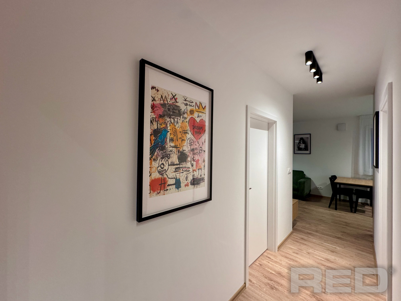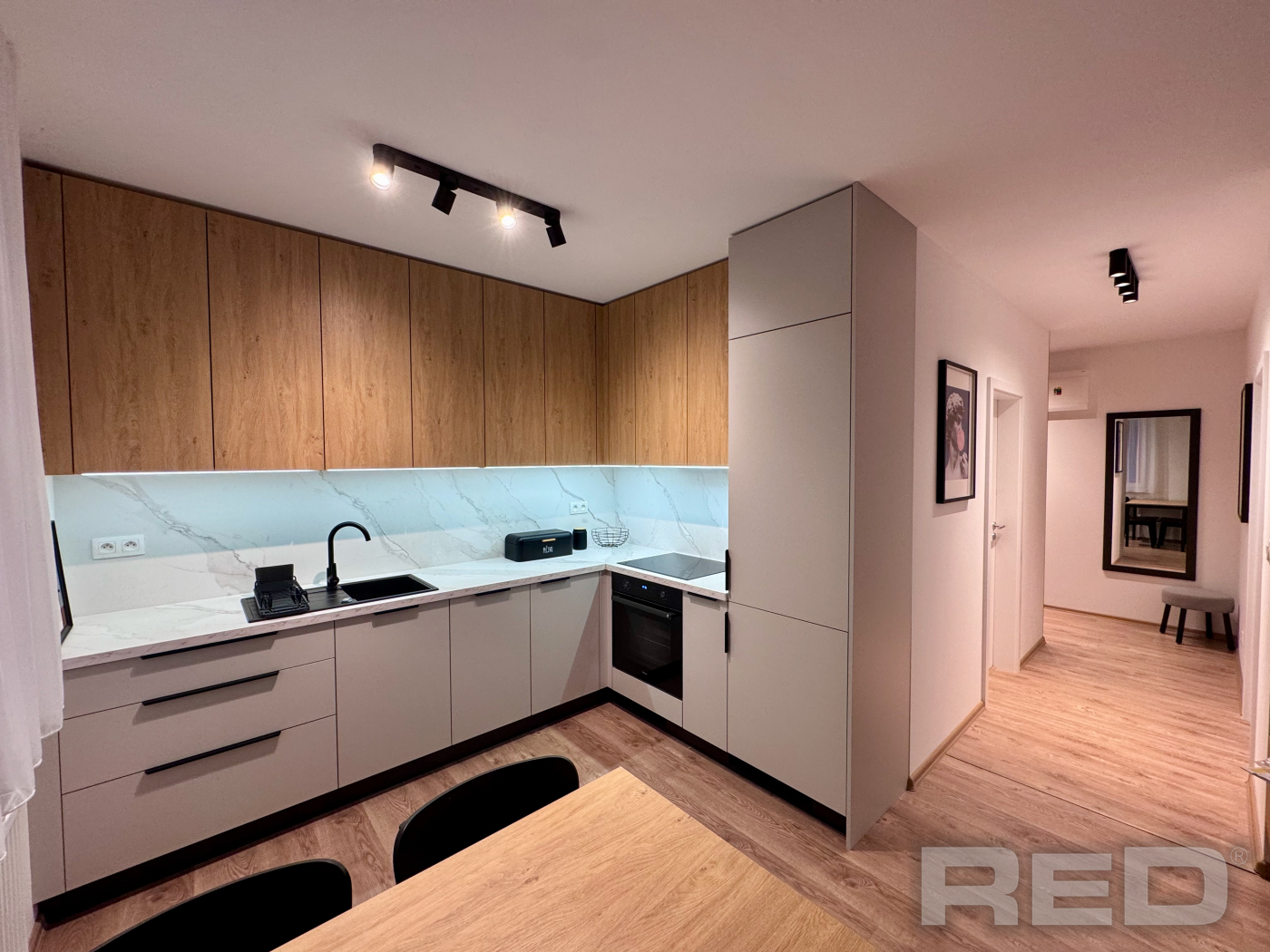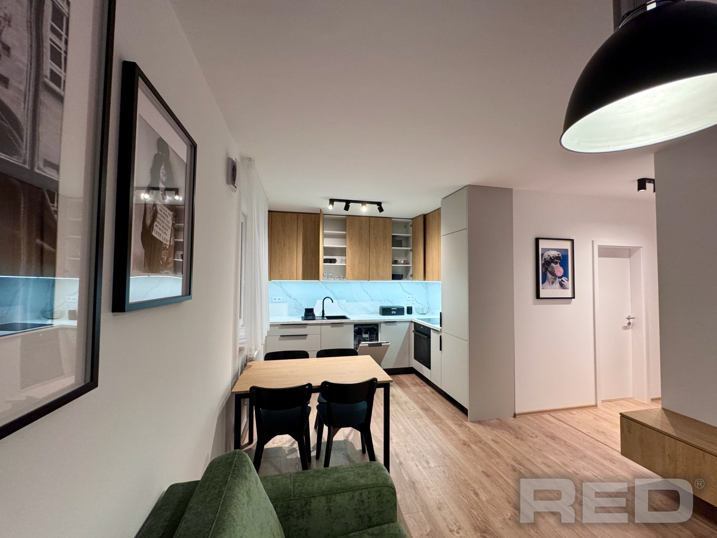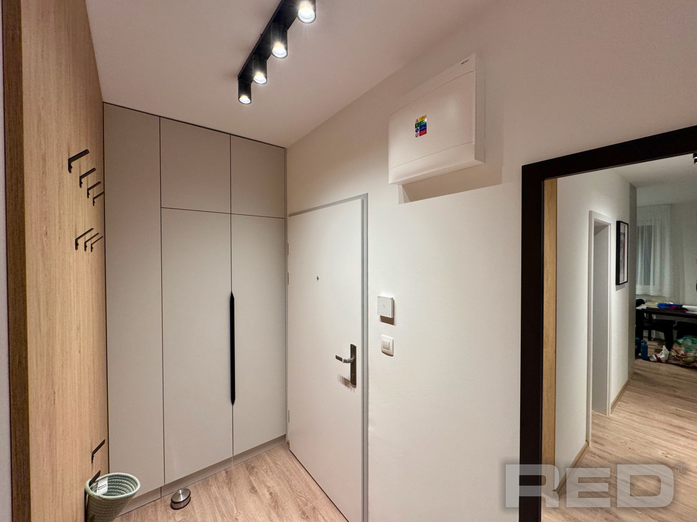 Byt pozostáva zo vstupnej chodby, obývačky spojenej s kuchyňou, spálne a kúpeľne s WC.