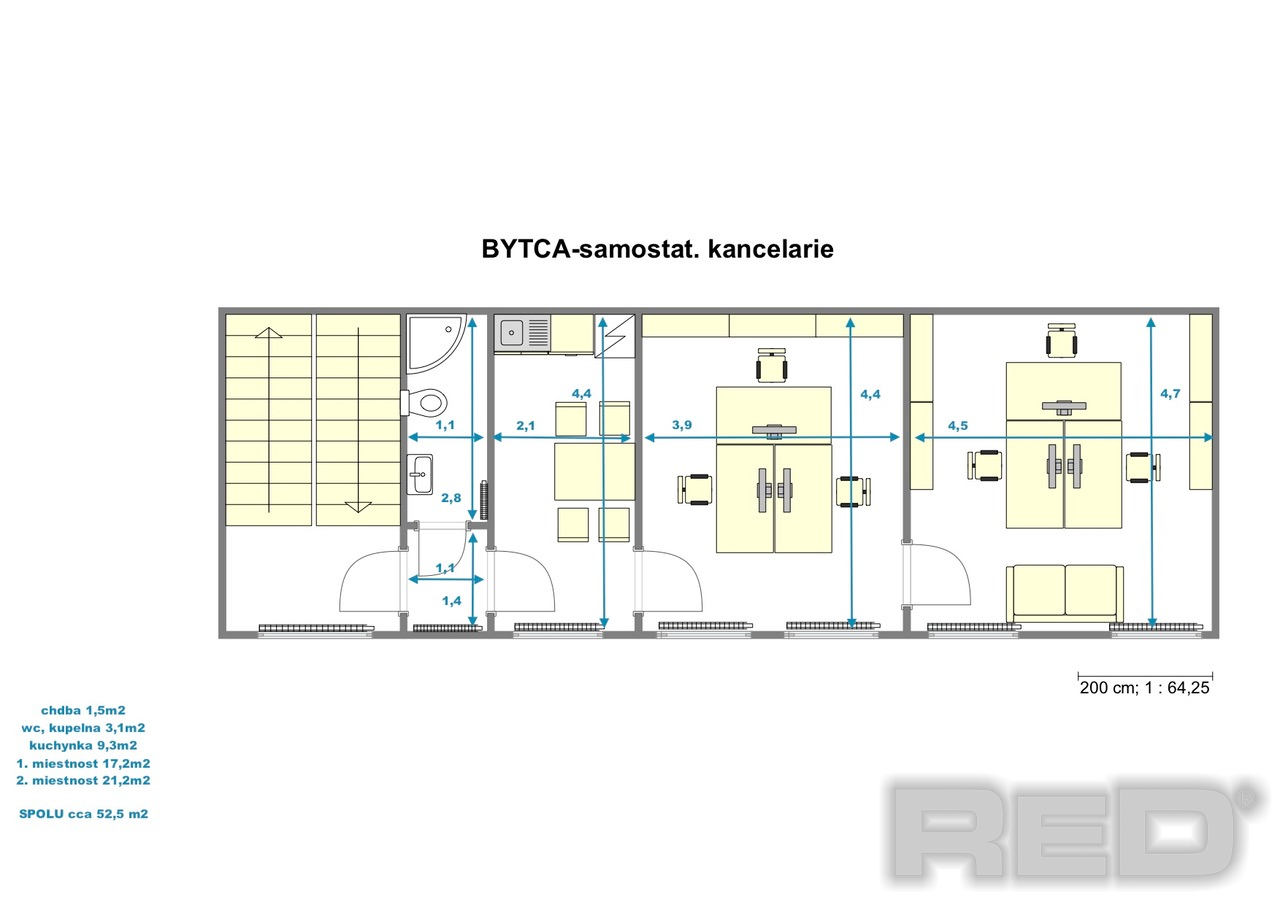 Svetlé administratívne a prevádzkové priestory o rozlohe 253 m2, (s možnosťou rozdelenia) + zázemie o výmere 16 m2....
